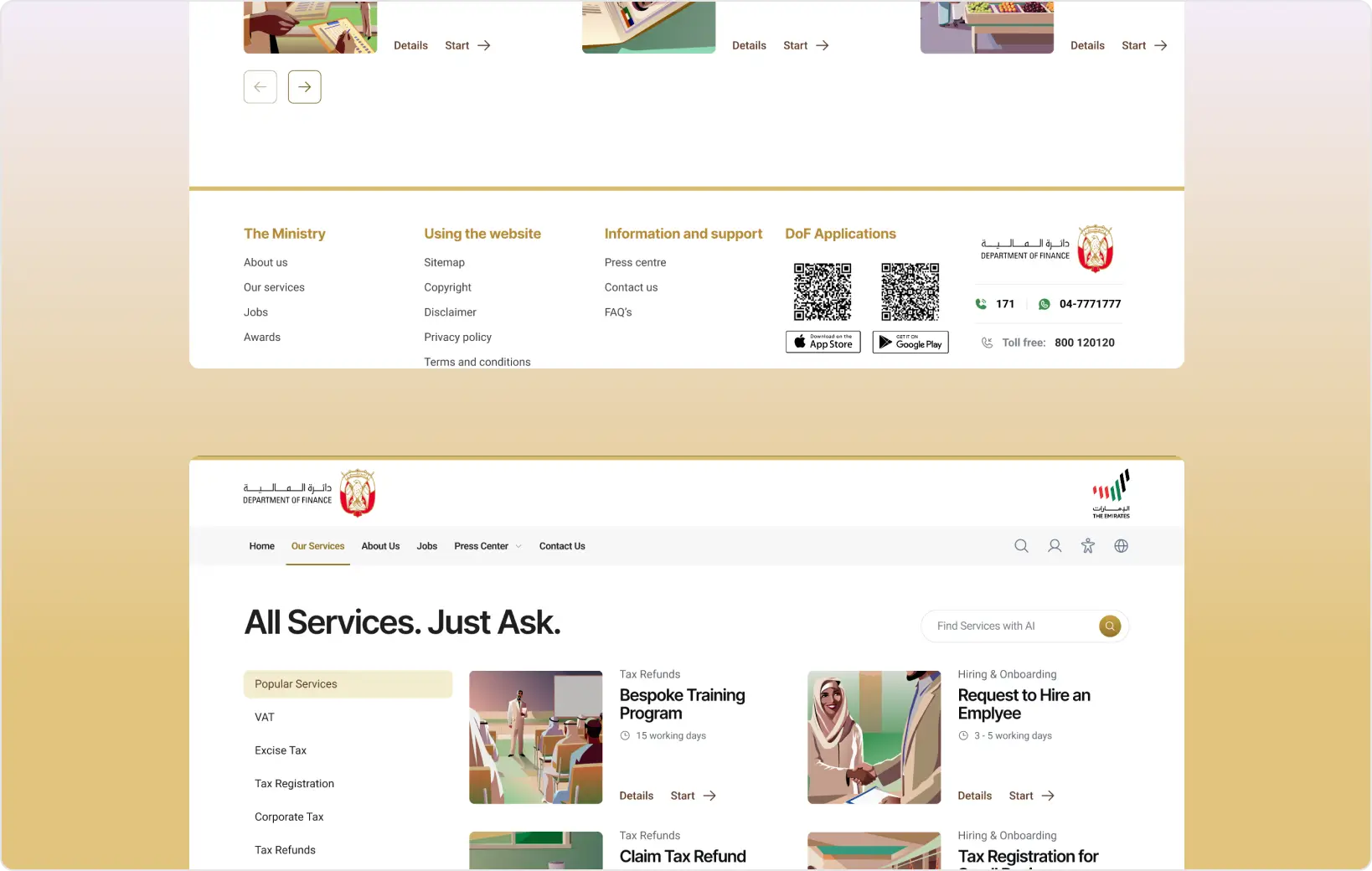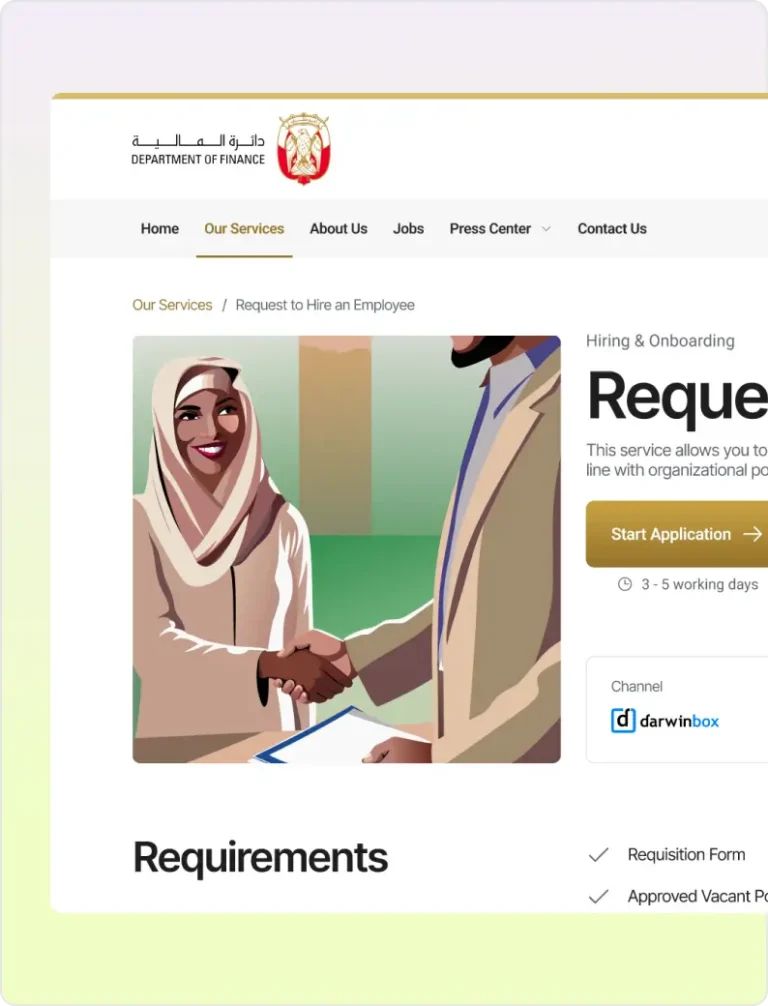 The Department of Finance required a centralized digital experience that would allow internal employees to discover and request services more efficiently. With multiple departments offering various services, there was a need to simplify access, improve transparency, and create a structured journey that could scale across the organization.